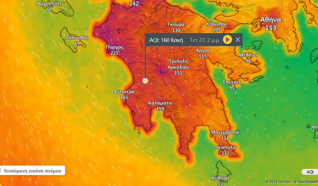 Με υψηλή θερμοκρασία, που έφτασε το μεσημέρι τους 21 βαθμούς κύλησε η σημερινή μέρα. Η υπερβολική πυκνότητα αιωρούμενων σωματιδίων 97 μg/m³ έκανε την ατμόσφαιρα αποπνικτική. Ο δείκτης ποιότητας αέρα, κατέγραψε το μεσημέρι 160, από 50 που υποδηλώνει φυσιολογική ατμόσφαιρα.
