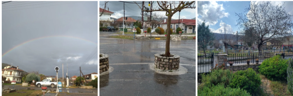 Μετά από μια νύχτα έντονης βροχής, ξυπνήσαμε το πρωί με ήλιο και παράλληλα μία ψιλή βροχούλα που δημιούργησε και ένα λαμπρό ουράνιο τόξο. Έως το μεσημέρι ήλιος και συννεφιά έμπαιναν στο παιχνίδι εναλλάξ. Το μεσημέρι είχαμε σύντομη καταιγίδα και χαλάζι και μετά έλαμψε ο ήλιος!