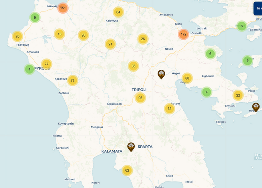 Παρότι καλύπτει όλη τη χώρα, η Μεσσηνία είναι ο μεγάλος απών. Πέραν του Δήμου Δυτικής Μάνης, που έχει εμφανίσει 63 ασφαλείς χώρους στα χωριά της, κανένας άλλος δήμος, ούτε αυτός της Καλαμάτας, δεν έχει φροντίσει να καταχωρίσει ασφαλείς χώρους συνάθροισης των πολιτών σε περίπτωση ανάγκης.