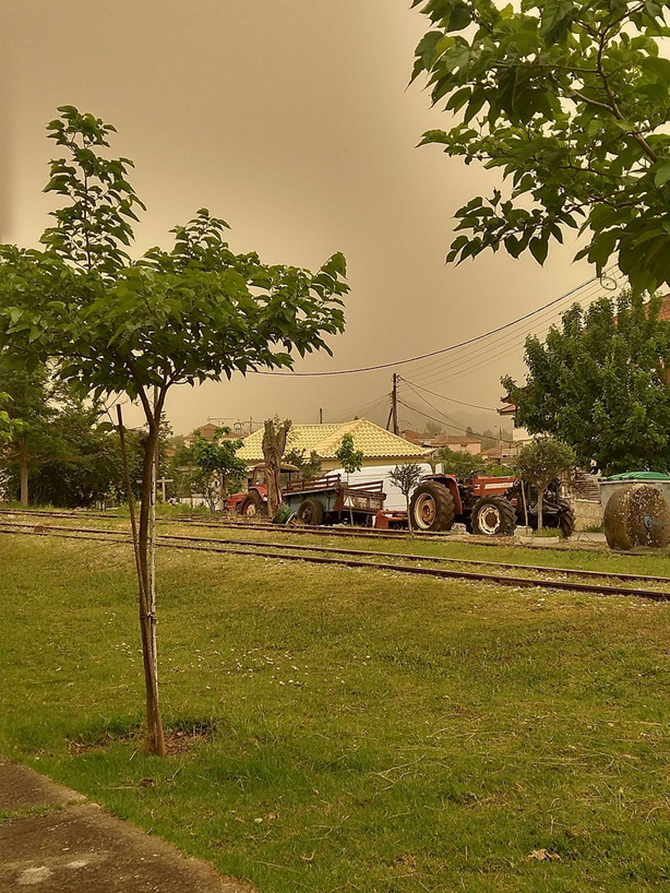 Αποπνικτική ατμόσφαιρα και περιορισμένη ορατότητα σήμερα με ιδιαίτερα υψηλά επίπεδα αφρικανικής σκόνης, τις μεσημεριανές και πρώτες απογευματινές ώρες. Στη συνέχεια είχαμε λασποβροχή που έκανε κόκκινες τις αυλές των σπιτιών και τα αυτοκίνητα. Αργά το απόγευμα η ατμόσφαιρα καθάρισε κάπως καθώς φύσηξε, ρίχνοντας ωστόσο τη θερμοκρασία.