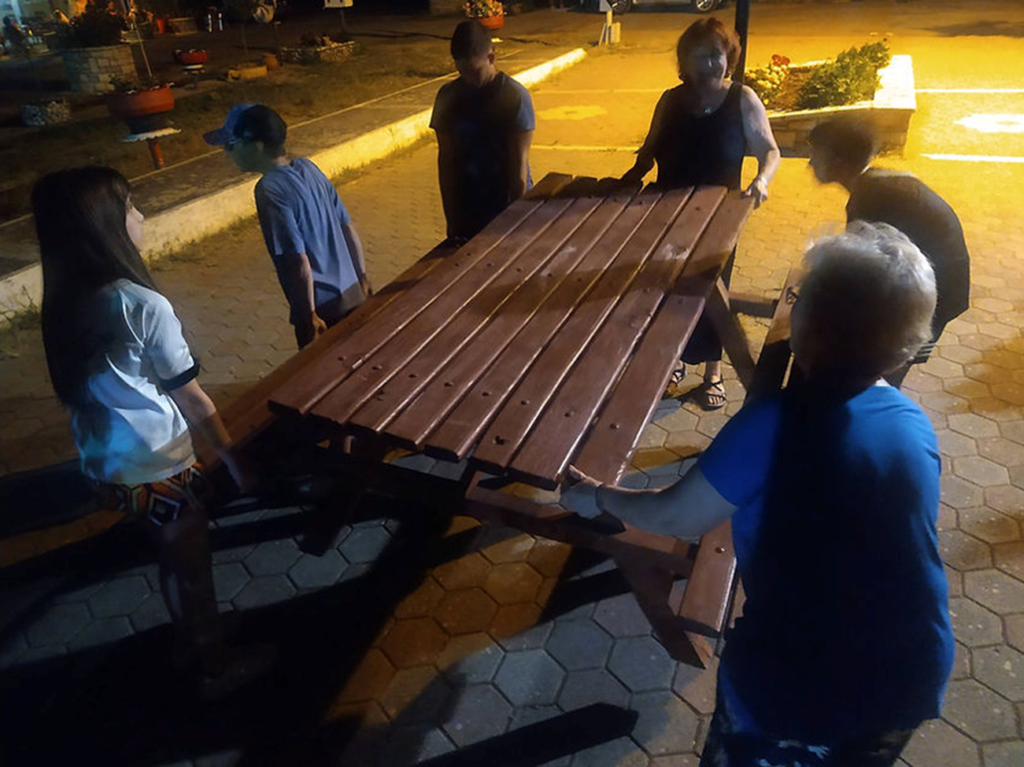 Με τη βοήθεια μικρών και μεγάλων τοποθετήθηκαν οι πάγκοι στα σημεία τους στο Σταθμό και ο χώρος είναι έτοιμος να δεχτεί τους καλοκαιρινούς επισκέπτες μας!