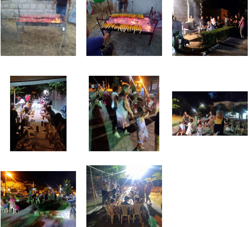 Τα κάρβουνα άναψαν από νωρίς και εθελοντές συγχωριανοί καλόψησαν σουβλάκια και καλαμπόκια για τα παιδιά. Προσφέρθηκαν επίσης αναψυκτικά και νερά. Όμορφη μουσική, ταιριαστή με την εκδήλωση πλαισίωσε τη γιορτή.