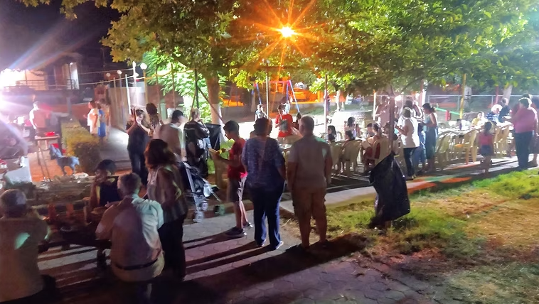 Προσφέρθηκαν σουβλάκια και καλαμπόκια που έψησαν εθελοντές, χυμοί και παγωτό.