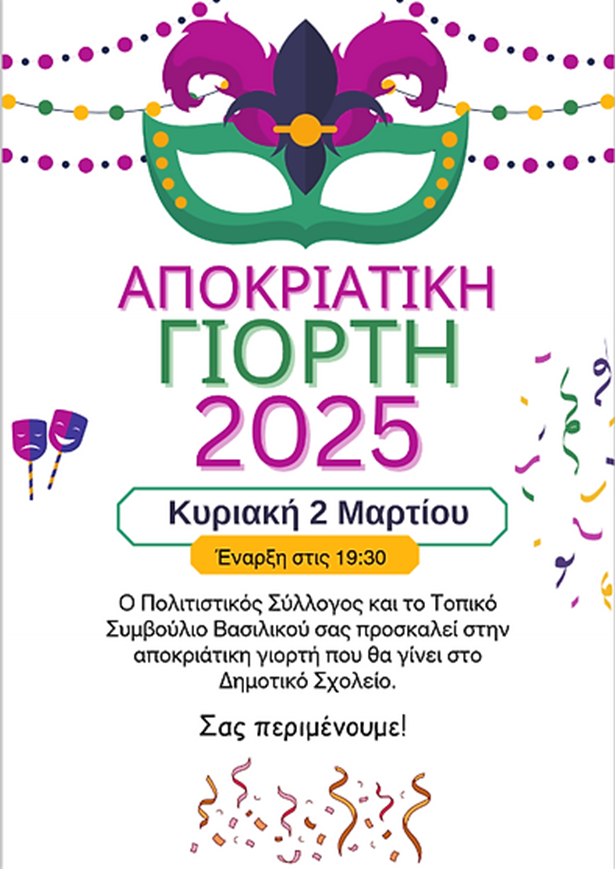 Την Κυριακή στις 19:30 η Αποκριάτικη γιορτή