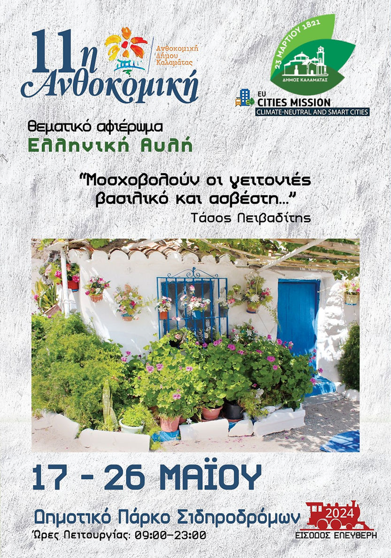 Η 11η ανθοκομική έκθεση Καλαμάτας θα διαρκέσει 10 μέρες (17-26 Μαΐου), θα λειτουργεί από τις…