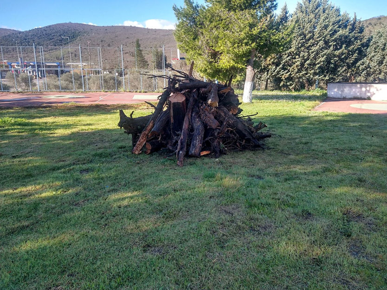 Τα ξύλα για την φωτιά της αποκριάτικης γιορτής βρίσκονται κιόλας στο προαύλιο του σχολείου. Ελπίζουμε…